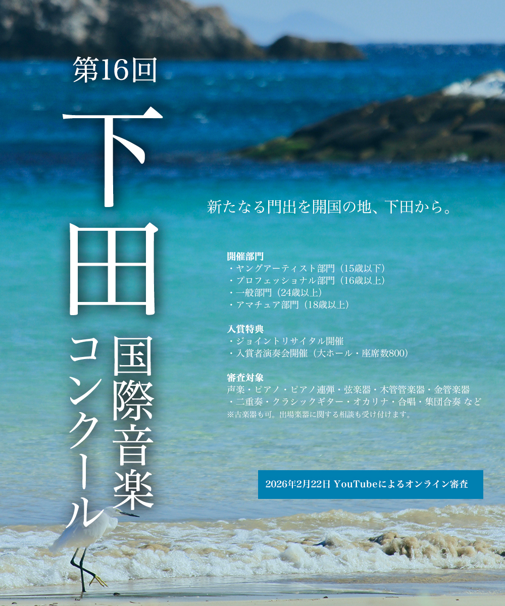 下田国際音楽コンクールは多くの方々のご協力・ご支援のもと、今回で第16回を迎えます。